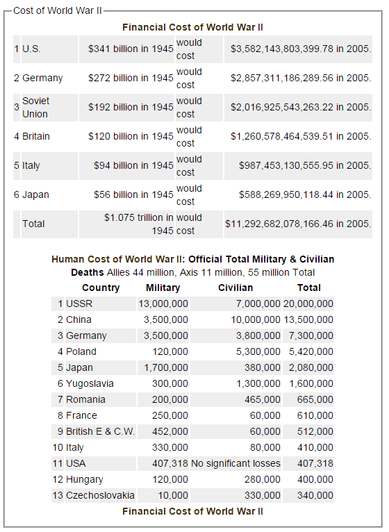 сколько обошлась Вторая Мировая война